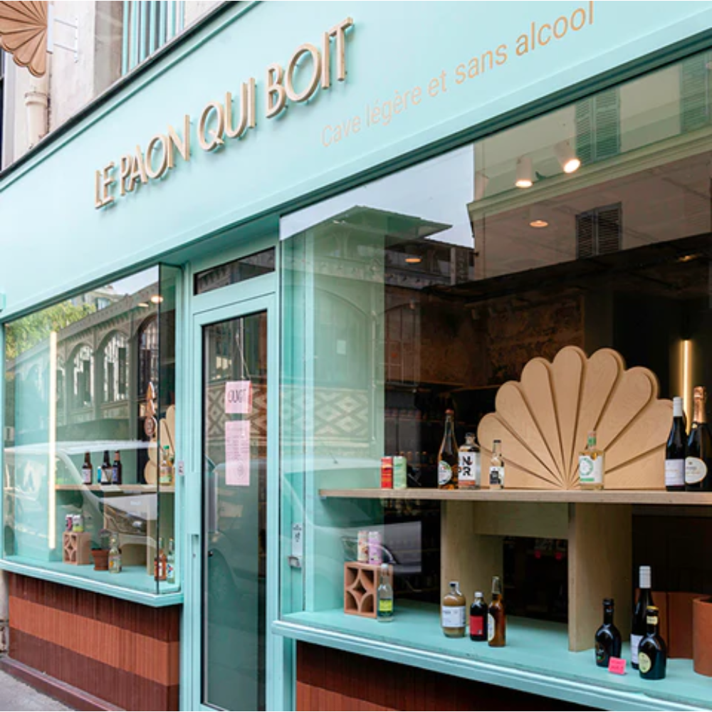 Vous y trouverez une jolie boutique, véritable caverne d'Ali Baba de la boisson fun, sans alcool et donc sans le mal de tête du lendemain !Le Paon nous offre un large choix en terme de boissons non-alcoolisées : du gin, du vin, des bières, des spiritueux, tous absolument sans alcool, des softs, kombucha, kéfir et jus en tout genre, de préférence plutôt bio et de production française. Cette belle idée, ce sont Augustin Laborde et Maut Catté qui en sont à l'origine, alors on leur souhaite une longue vie et beaucoup d'autres ouvertures… sans modération ! Allez, Trinquez mais sans tituber !