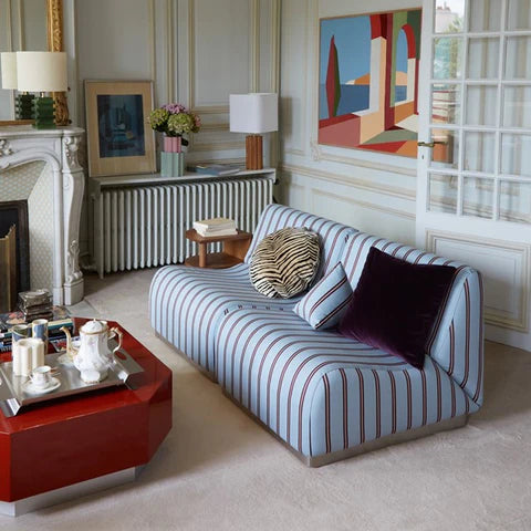 Celui-ci fait référence au style déco né dans les années 20, époque opulente de la méditerranée où tout n'est que joie et quiétude… Il se caractérise par des motifs à rayures, notamment sur les textiles.