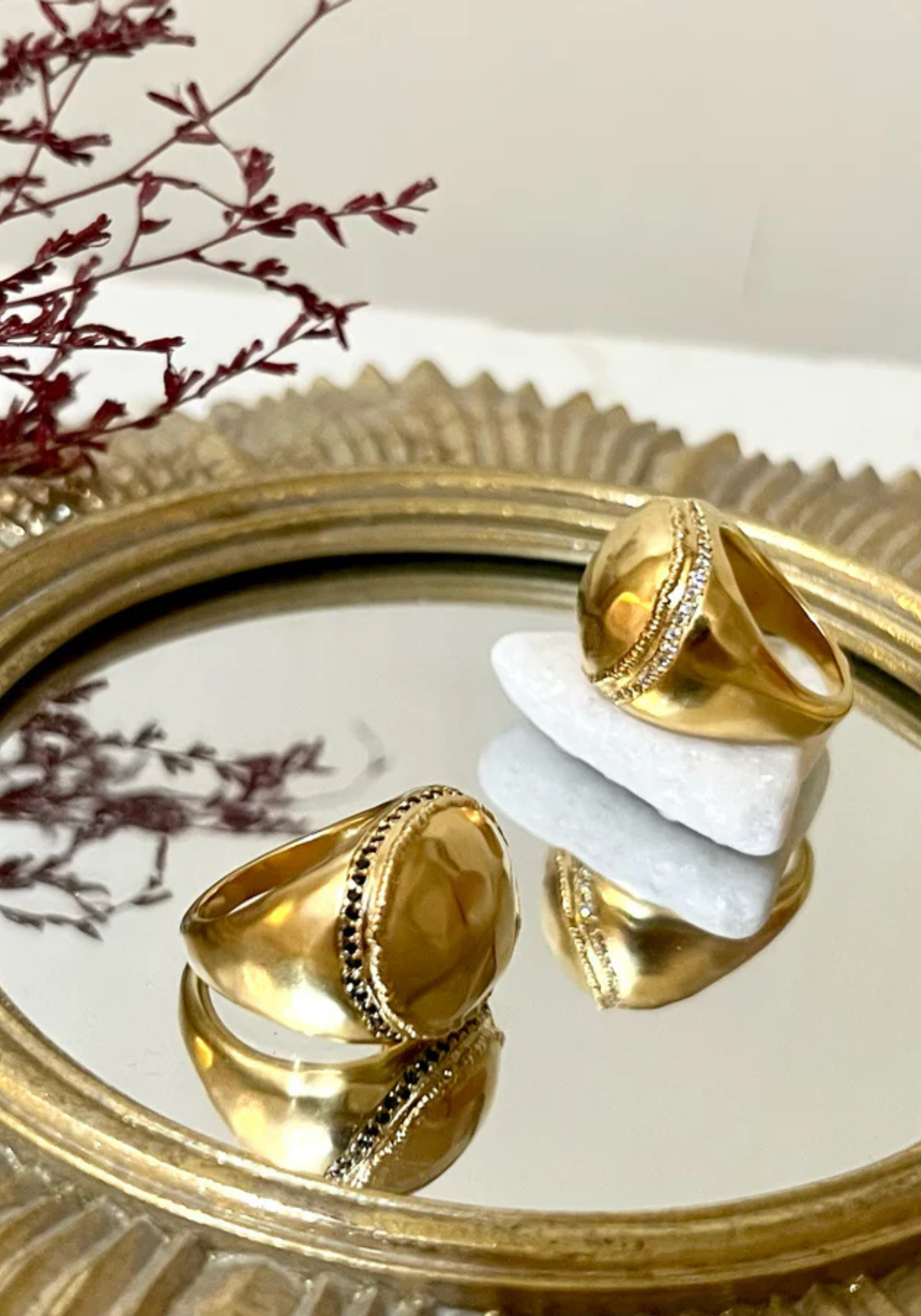 Leur finition n’est pas parfaite à l’excès : au contraire, l’imperfection assumée, les polissages bruts, les textures usées donnent l’impression que chaque bijou a déjà vécu mille vies. Ce charme un peu usé, un peu vintage, confère aux créations une profondeur, une âme, loin des bijoux froids et standardisés.